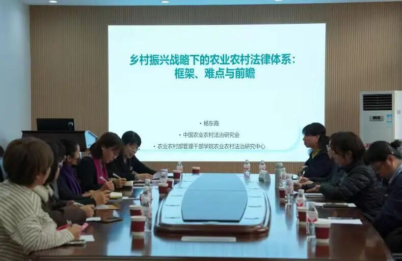 2025年11月15日下午,由文法学院主办的“乡村振兴战略下的农业农村法律体系:框架、难点与前瞻”学术讲座在文法学院201-6会议室顺利举行。中国农业农村法治研究会副会长、农业农村部管理干部学院农业法律研究中心主任杨东霞教授作题为《乡村振兴战略下的农业农村法律体系:框架、难点与前瞻》的学术报告。学院师生代表30余人参加讲座,讲座由朱文玉院长主持。