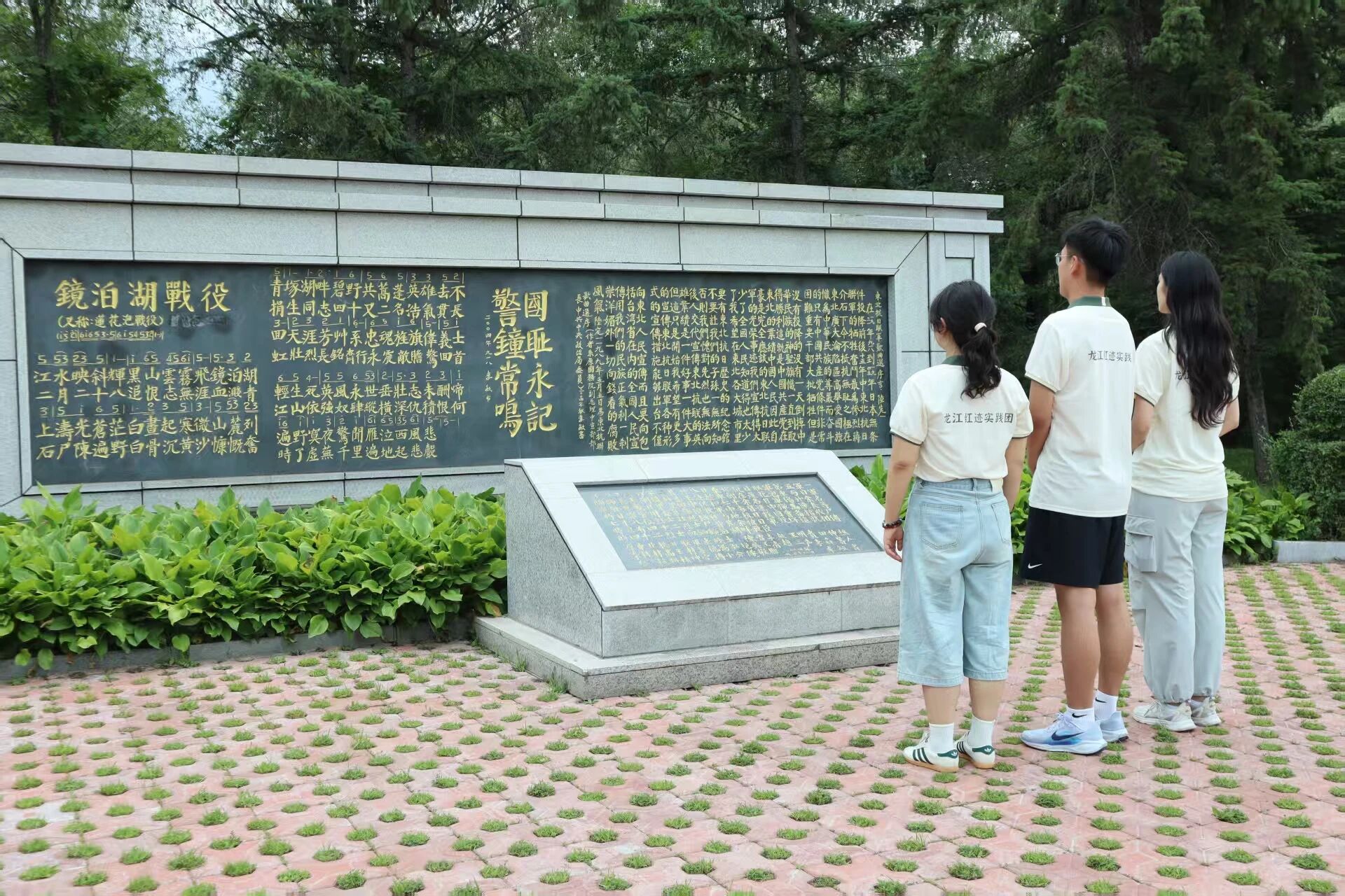 为进一步传承红色基因,赓续红色血脉,龙江红迹实践团于2025年7月20日前往黑龙江省牡丹江市镜泊湖红色教育基地开展社会实践活动。指导教师王嘉文老师带领团队成员们深入探访抗联碑园党性教育基地,聆听革命先辈的英雄事迹。成员们通过实地调研、史料研学等方式,深刻体悟东北抗联将士“以林海为战场”的奋斗精神,决心将红色基因与绿色发展理念融入专业学习,争做新时代"红绿相承"的生态文明建设者。