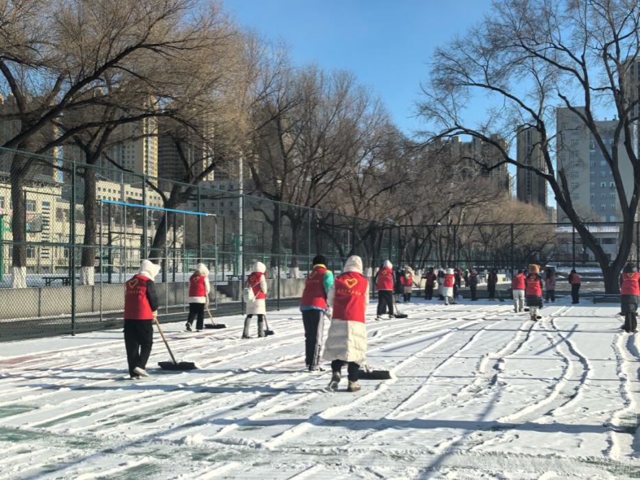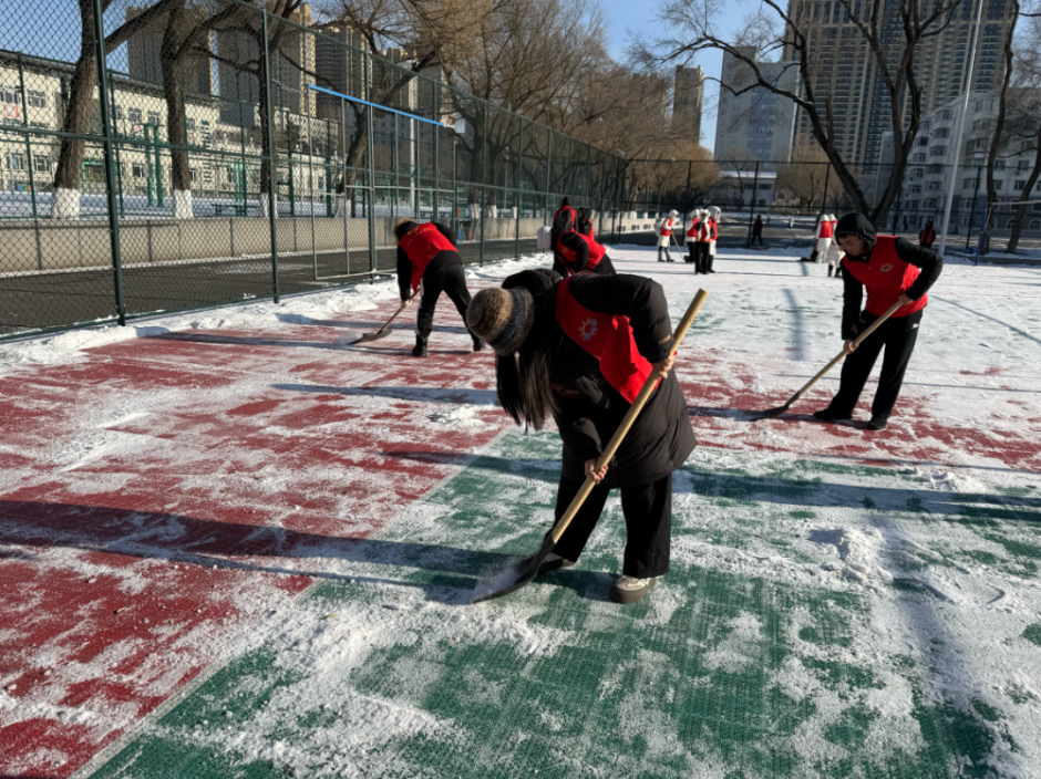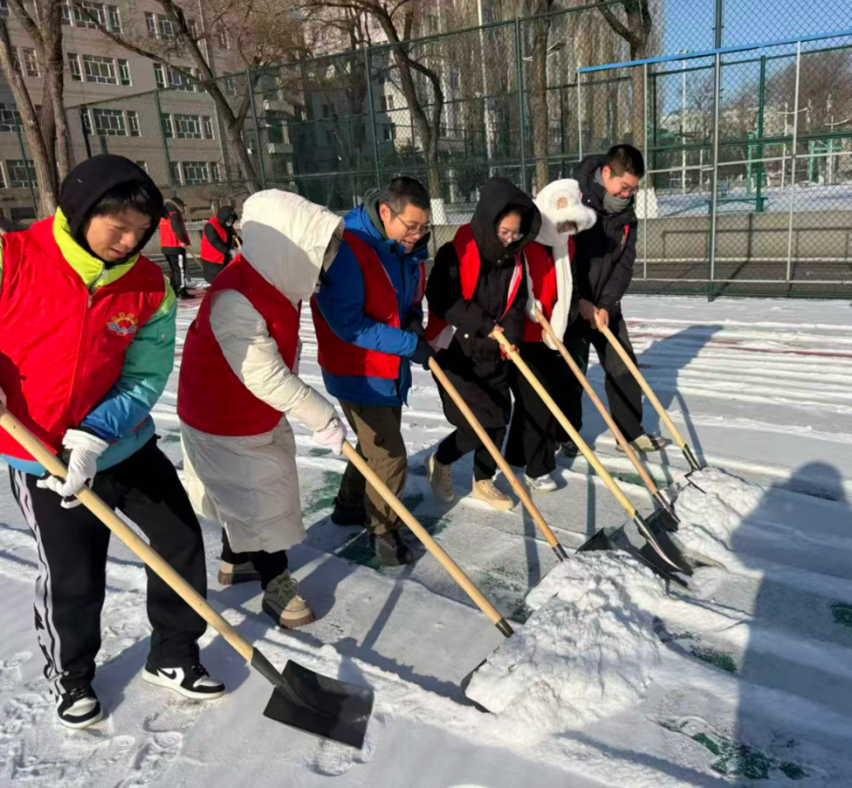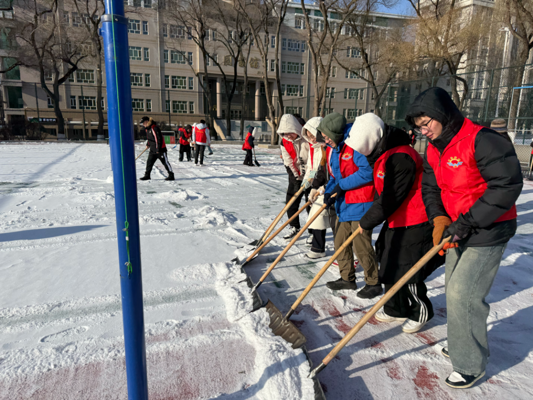 此次活动重点对室外排球场及周边通道的积雪积冰进行清理。活动中,同学们发扬不怕苦、不怕累的奉献精神,手持铁锹、推雪板等工具,热情投入、分工协作,齐心协力破冰铲雪、清运冰雪。小伙伴们不畏寒风,在劳动的同时,脸上洋溢着快乐的笑容,展现出高度的劳动积极性、团队凝聚力和乐观主义精神。经过共同努力,排球场回到了以前的模样,为师生活动创造了安全便利的条件。
