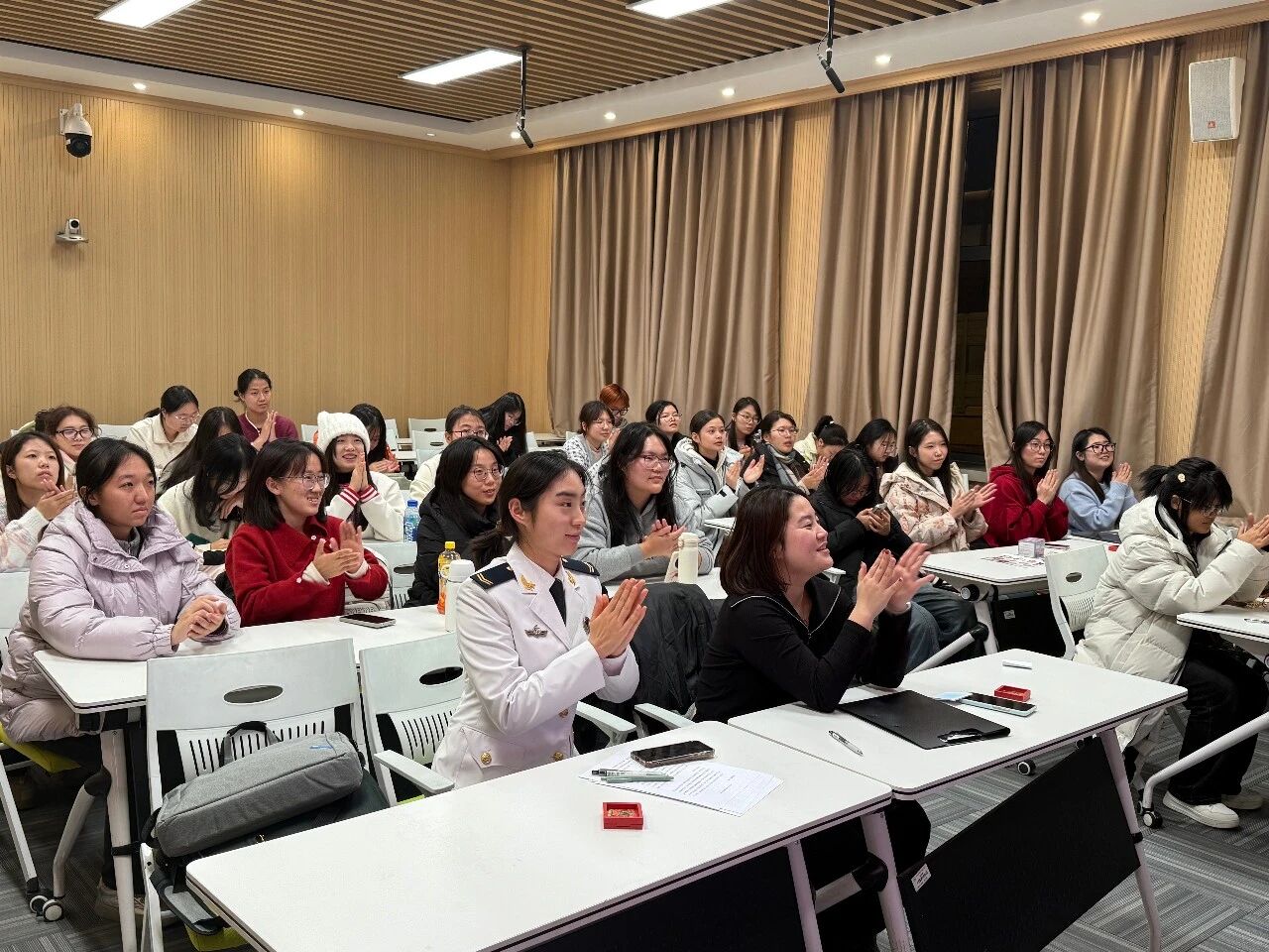 “军旅淬炼·初心永恒”故事分享环节,退伍大学生代表—赵路瑶同学的发言直击人心:从参军入伍的赤诚初心,到部队里纪律与执行力的磨砺成长,再到“若有战,召必回”的坚定信念,她将部队作风融入学业与未来规划的实践,让在场同学深刻感受到“退伍不褪色”的责任担当。