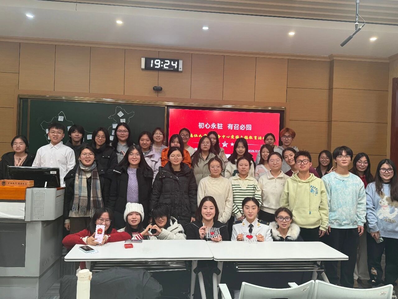 “请党放心,强国有我!”“若有战,召必回!”“以青春助祖国前行,以实干添彩山河。”文法学院退伍大学生事务中心积极响应时代号召,精心策划并圆满举办了此次“时代召唤·青春共鸣”爱国主题教育活动。通过退伍大学生故事分享、红色电影互动体验、手作爱国心等形式,让青年学子在沉浸式参与中厚植家国情怀、勇担时代使命。