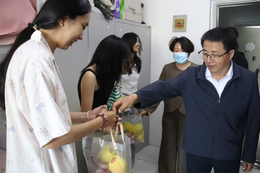 金风送爽,秋月朗照。在2025年中秋佳节来临之际,文法学院党委书记侯彦杰,党委副书记、副院长郭婷婷及辅导员老师们组成关怀小组,再次走进学生宿舍,为学院各寝室的大一学子送去节日的问候与学院的温暖关怀。