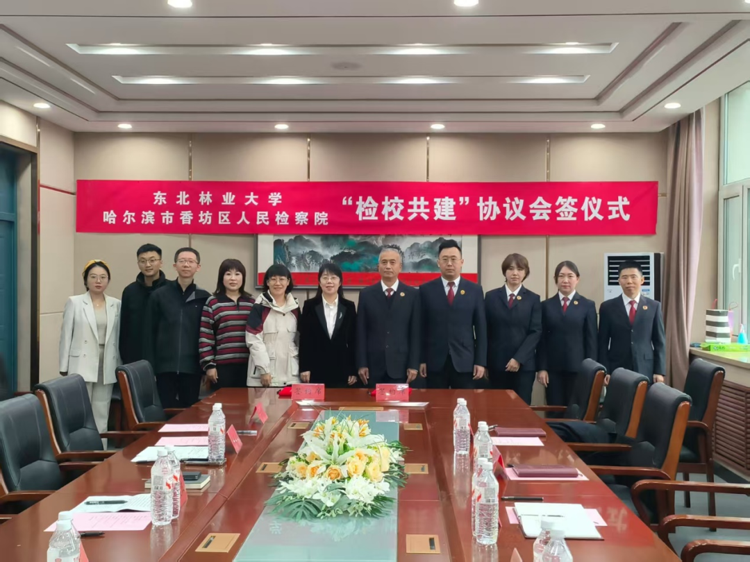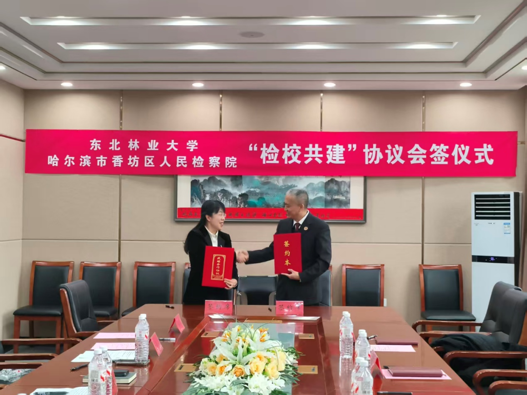 为深入贯彻落实最高检、教育部《关于加强新时代检察机关与高等学校合作的意见》,推动法治教育与检察实践深度融合,10月15日上午9时,哈尔滨市香坊区人民检察院与东北林业大学在文法学院306会议室举行“检校共建”协议会签暨揭牌仪式。双方将以此次签约为契机,整合资源、优势互补,共同探索法治人才培养与实践创新的新路径。香坊区人民检察院党组成员、副检察长白云杰及相关负责同志,东北林业大学文法学院院长朱文玉及有关教师出席仪式。仪式由东北林业大学文法学院副院长邹丽梅主持。