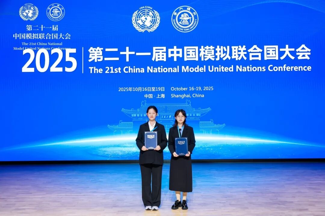 2025年10月16日至19日,第二十一届中国模拟联合国大会在上海交通大学成功举办,中国联合国协会副会长兼总干事胡文丽、外交部国际司陈凯参赞、上海交通大学党委书记杨振斌出席开幕式并致辞,联合国秘书长古特雷斯向大会发来贺信和视频贺辞。我校文法学院政治学与行政学专业2024级本科生邓勤琴、周凯玉、王妤鑫、李怡,在程铭、张梦时老师的指导下,组成东北林业大学代表团在本次大会上再创佳绩。邓勤琴同学获得杰出代表团奖项、李怡同学获得最具潜力奖项。这是我校代表团第四次在我国最高级别模拟联合国活动中斩获奖项,也是首次取得同时获评两大奖项的佳绩。