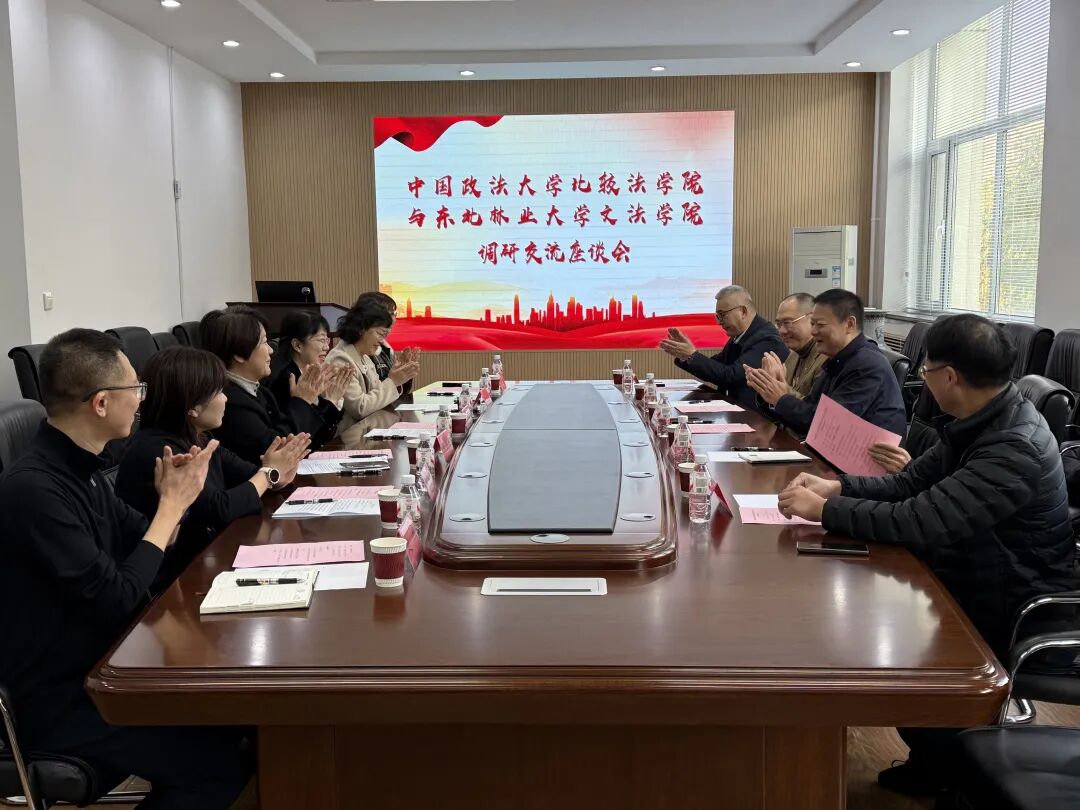 会上,中国政法大学比较法学院党委书记顾永强表示,此次调研的主要目的是加强与东北林业大学文法学院法学学科的交流,并就新时期学生工作典型做法、学生培养痛点难点、研究生招生质量提升和两院加强交流合作等方面的经验、问题和方向进行深入交流。顾书记简要介绍了比较法学院的发展现状及当前工作重点,指出东北林业大学文法学院在环境与资源保护法学等特色领域取得了显著成绩,为法治人才培养作出了积极贡献。希望在未来的合作中,双方能够依托各自平台优势,通过学生联合培养、教师学术兼职、共建研究平台等方式,推动资源共享,协同开展高水平比较法学研究,助力新时代法学学科高质量发展。