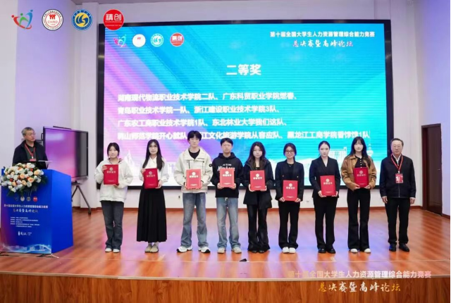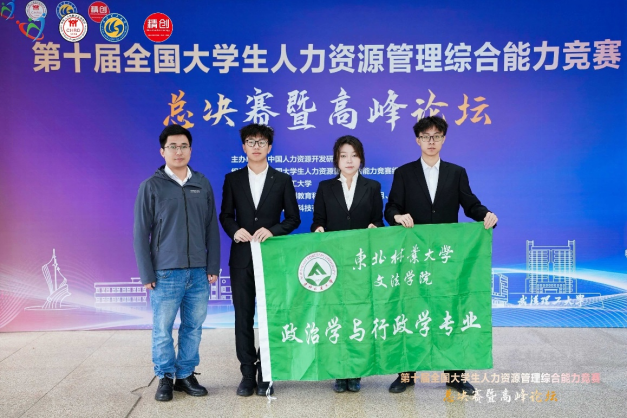 2025年11月8日至9日,第十届全国大学生人力资源管理综合能力竞赛总决赛在武汉理工大学南湖校区隆重举行。我院政治学与行政学专业积极组建队伍参赛,团队由周天艺、张瑜、张恩田组成,王国宏老师担任竞赛指导教师。队员们凭借扎实的专业能力与出色的团队协作,最终在本科生组赛事中斩获全国二等奖。