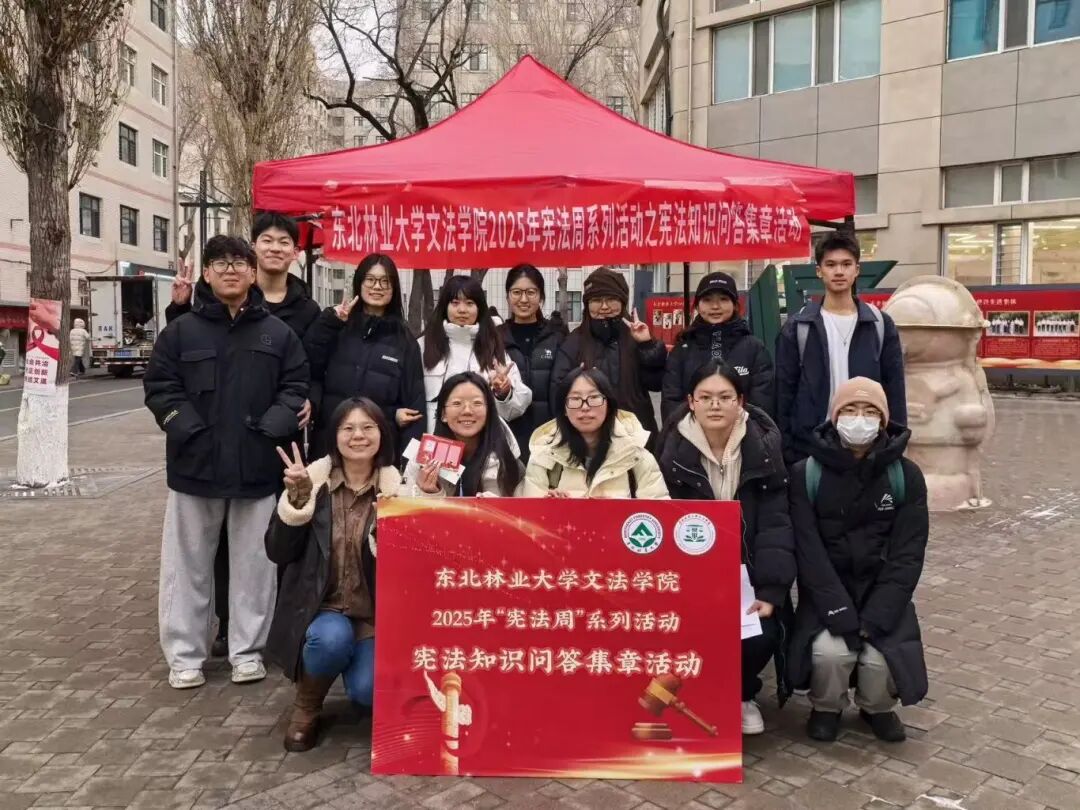 律润校园沐新风,宪铸初心启新程。2025年12月4日是我国第十二个国家宪法日,12月1日—12月7日是我国第八个宪法宣传周。为深入学习贯彻习近平法治思想,推动宪法精神在校园内外落地生根、开花结果,东北林业大学文法学院以“学习宣传贯彻习近平法治思想 推动宪法知识深入人心”为核心主题,精心策划并组织开展了涵盖理论研讨、实践普法、趣味互动三大类共十余项特色活动,实现校园与社区全覆盖、理论学习与实践体验深度融合,成功让宪法知识从文本走向生活,让法治信仰深植师生与群众心中。