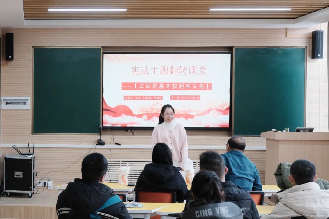 12月1日,文法楼206教室开启别开生面的翻转课堂活动。活动打破传统教学模式的束缚,通过沉浸式情景模拟、趣味互动问答、典型案例剖析等丰富形式,带领同学们直观理解公民的宪法权利与义务内涵。生动鲜活的教学形式让宪法知识摆脱了枯燥的文本表述,真正“活”起来、“动”起来,极大提升了同学们学习宪法知识的主动性与积极性。