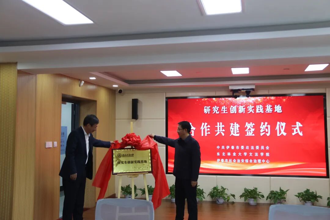 2025年12月4日,东北林业大学与伊春市社会治安综合治理中心于伊春市举行合作签约暨揭牌仪式,共同签署《东北林业大学文法学院研究生创新实践基地共建协议书》,并正式为双方共建的“研究生创新实践基地”揭牌。