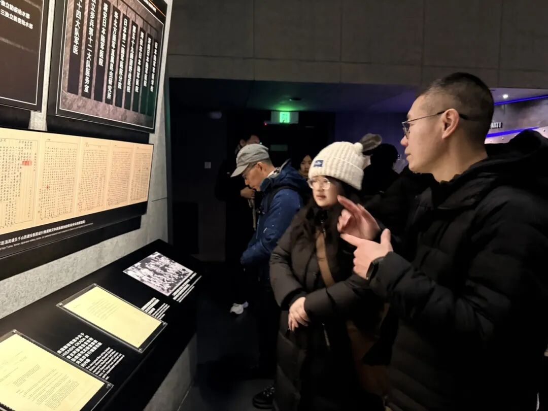 苍松肃立,寒风吹不散历史的阴霾;旧址无言,文物诉说着民族的苦难。全体同学依次参观了新馆基本陈列、本部旧址复原陈列及《侵华日军细菌战珍贵文物及史料特别展》等展区。在重新开放的殉难者名录墙前,2805个镌刻着姓名的石碑与195块无名石碑静静伫立,记录着惨遭人体实验和细菌战迫害的同胞们的苦难,同学们驻足凝视,神情肃穆,深切体会到侵略者暴行的残酷与民族曾经的伤痛。展柜中,泛黄的实验档案、锈迹斑斑的刑具、受害者的遗物等2082件珍贵文物史料,以铁一般的证据还原了七三一部队的反人类罪行,让在场党员接受了一次深刻的历史教育和精神洗礼。