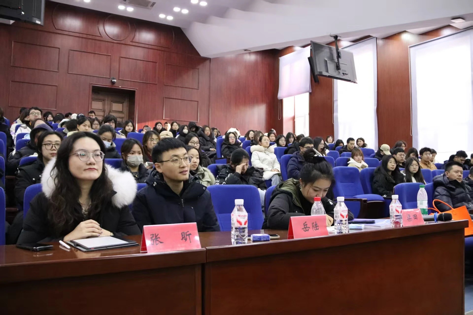 2025年12月21日下午,东北林业大学文法学院特邀哈尔滨市中级人民法院陈阵法官为主讲嘉宾,围绕“刑事审判实务与审判思维”主题,展开深入分享与交流。本次讲座由文法学院刑法教研室宋大伟老师主持,黑龙江省人民检察院张禹珩检察官、文法学院刑法学教研室岳陆老师、梁田老师、环境法教研室教师张昕等嘉宾应邀出席,2024级法学专业本科生及研究生约一百余人参加此次实务讲座。