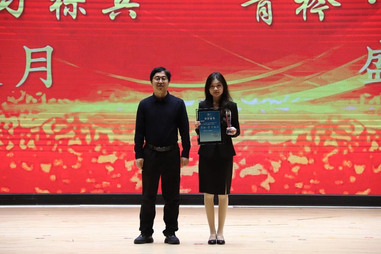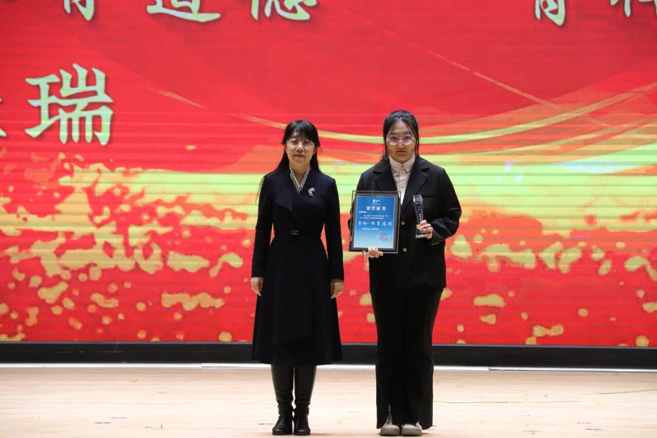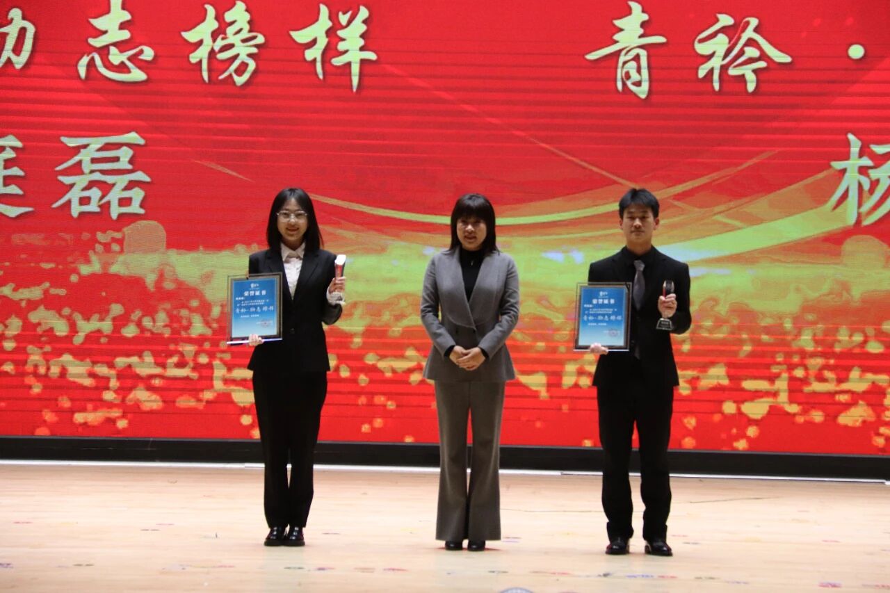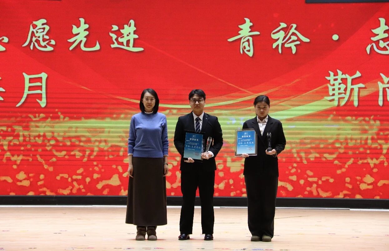 晚会重点环节是首届“青衿”先进个人颁奖。“青衿”取自经典,寓意青年才俊,旨在表彰文法学院各方面表现突出的优秀学子。典礼依次颁发“励志榜样”“志愿先进”“学习标兵”“文艺风采”“体育道德”“先锋模范”六大奖项。韩嘉宇、孙义皓等十四位获奖学生代表上台接受表彰。他们在逆境中奋发、在奉献中成长、在学业上深耕、在舞台上绽放、在实践中担当,生动展现了文法学院学子全面发展的昂扬风貌。