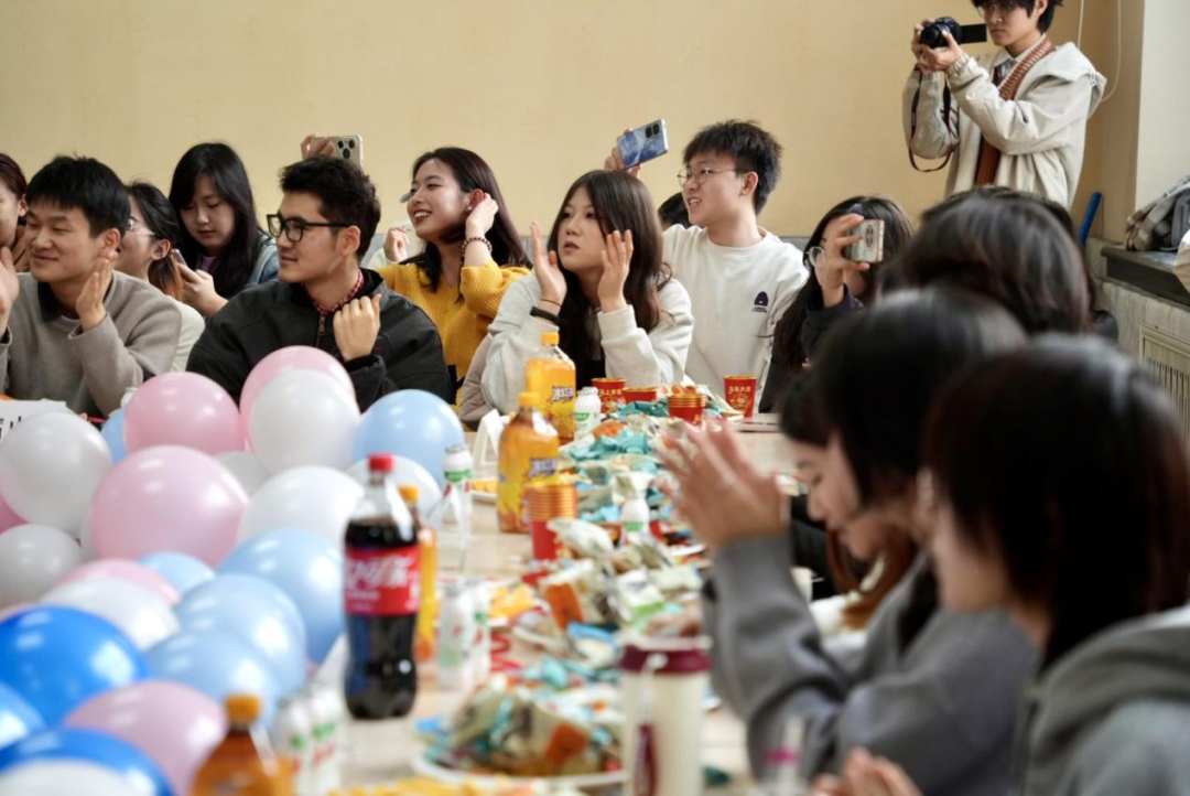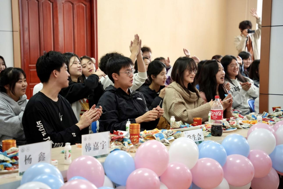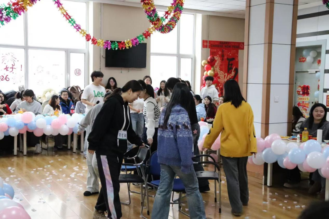 为增进师生互动,联欢会还穿插了“知识竞答”“抢凳子”“踩气球”等趣味游戏。师生踊跃参与、默契配合,在轻松愉悦的比拼中拉近距离,欢声笑语不断,将晚会氛围一次次推向新的高点。整场活动在欢乐、温馨、团结的氛围中有序开展,生动展现了文法学院师生积极向上、凝心聚力的良好精神风貌。最后,全体师生共同合影留念,定格下这一温馨美好的时刻,联欢会圆满落幕。