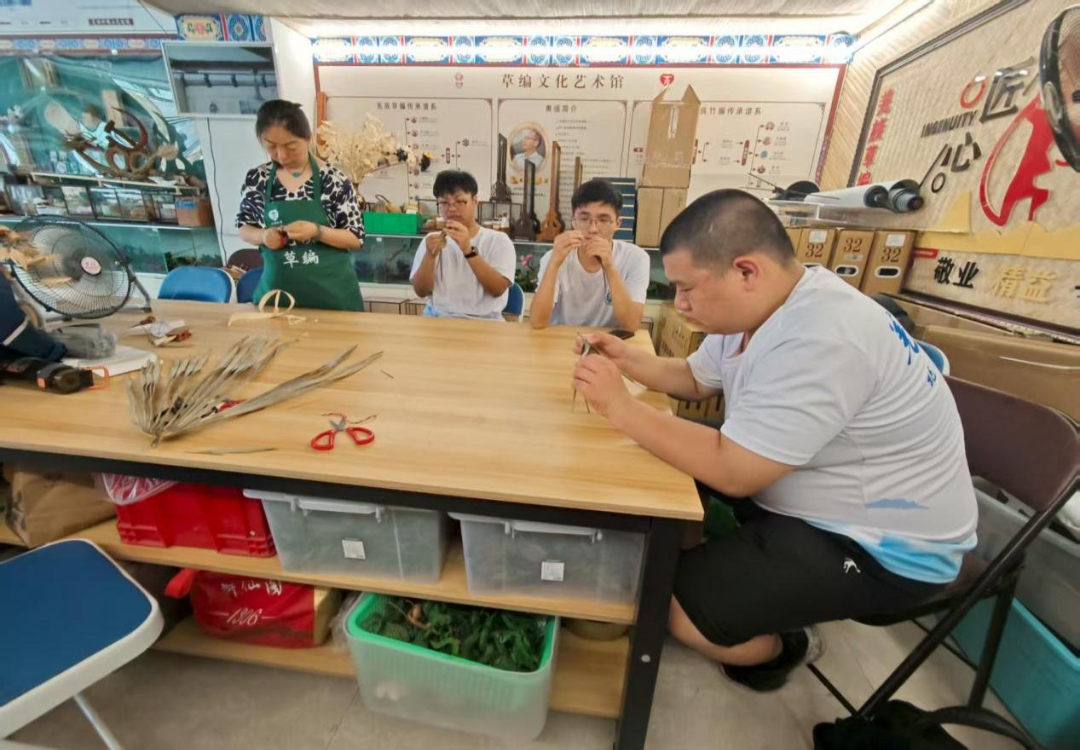 图为实践团成员体验草编(吴牧野供图)