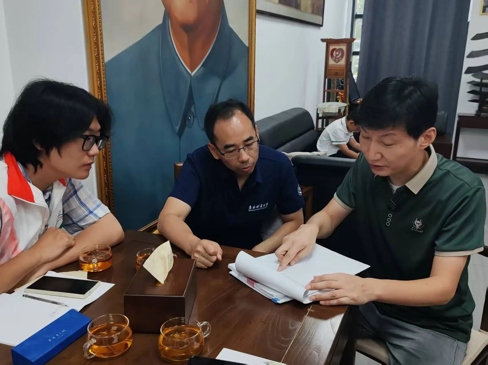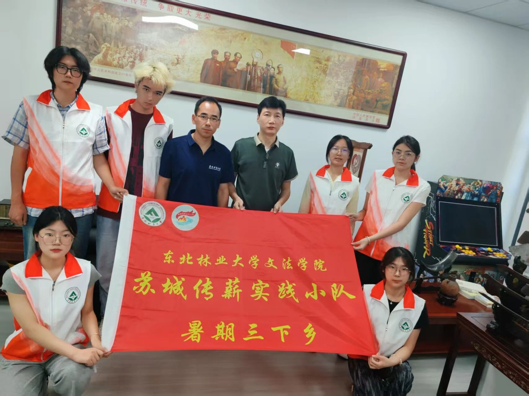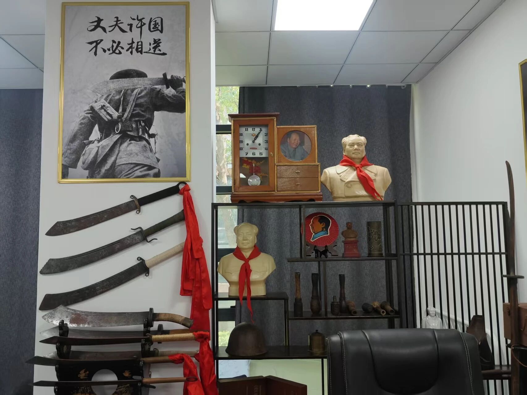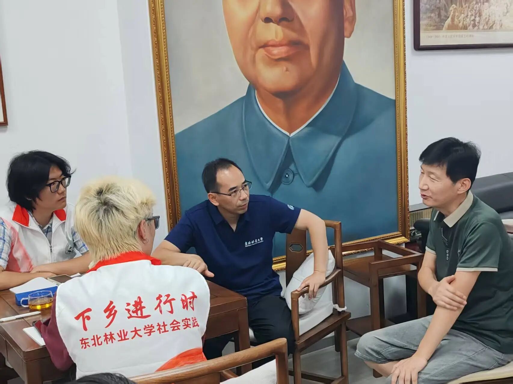 7月23日,东北林业大学文法学院“苏城传薪”实践小队在指导教师庞文的带领下,走进张林老师的工作室,围绕“烽火记忆,青春同行”主题,开展以“听口述党史”为核心的访谈实践活动。这间四十余平方米的空间里,抗战时期的炮弹壳、磨损的军服、泛黄的入党申请书等红色文物静静陈列,无声诉说着峥嵘岁月,为这场特殊的“党史课”奠定了厚重基调。